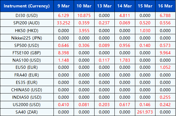 Please be advised that the following instruments’ trading hours and market session times will be affected by the upcoming March holidays.