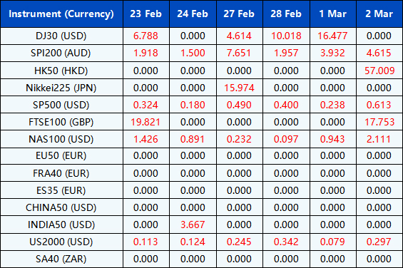 Please note the above data are subject to changes. Please refer to MT4/MT5 for details.