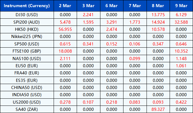 Please be advised that the dividends of the following index CFDs will be adjusted by upcoming ex-dividend dates. The comment for trading index CFDs will be in the following format “Div&<Product Name>&<Net Volume>” which show in the balance after the close of the day before the dividend payment date.