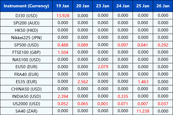 Please be advised that the following instruments’ trading hours and market session times will be affected by the upcoming January holidays.