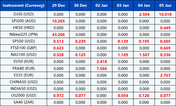 Please be advised that the following instruments’ trading hours and market session times will be affected by the upcoming New Year holidays.