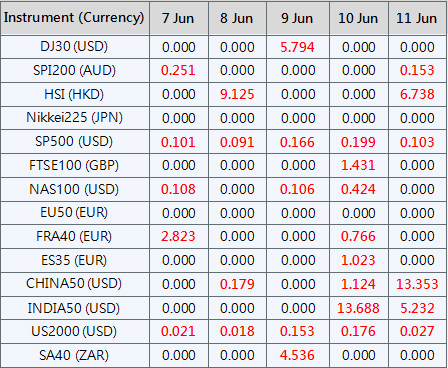 Please be advised that the dividends of the following index CFDs will be adjusted by upcoming ex-dividend dates. The comment for trading index CFDs will be in the following format “Div&<Product Name>&<Net Volume>” which show in the balance after the close of the day before the dividend payment date.