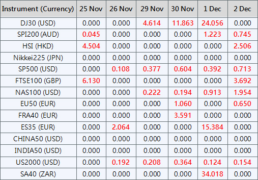 Please be advised that the dividends of the following index CFDs will be adjusted by upcoming ex-dividend dates. The comment for trading index CFDs will be in the following format “Div&<Product Name>&<Net Volume>” which show in the balance after the close of the day before the dividend payment date.
