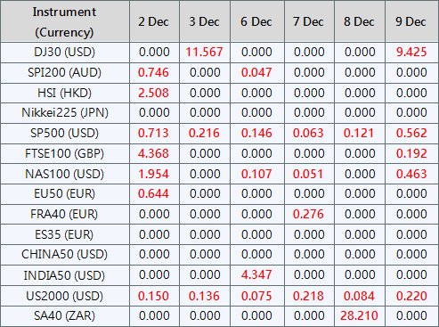 Please be advised that the dividends of the following index CFDs will be adjusted by upcoming ex-dividend dates. The comment for trading index CFDs will be in the following format “Div&<Product Name>&<Net Volume>” which show in the balance after the close of the day before the dividend payment date.