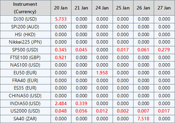 Please be advised that the dividends of the following index CFDs will be adjusted by upcoming ex-dividend dates. The comment for trading index CFDs will be in the following format “Div&<Product Name>&<Net Volume>” which show in the balance after the close of the day before the dividend payment date.