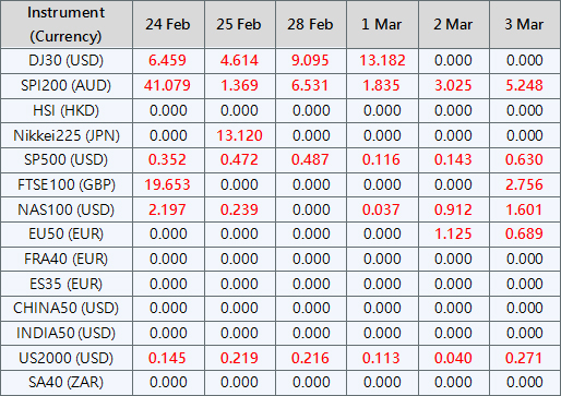 Please note the above data are subject to changes. Please refer to MT4/MT5 for details.