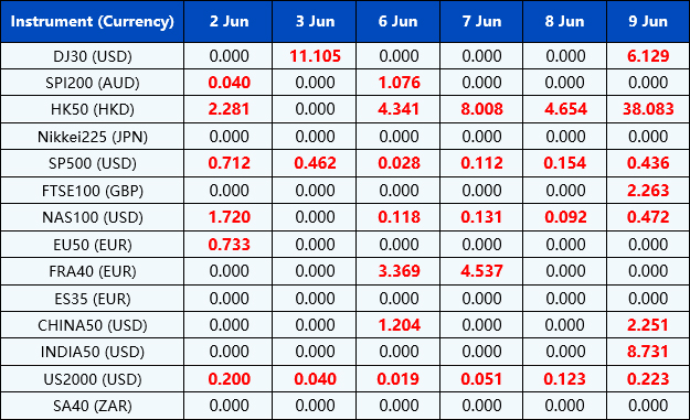 Please be advised that the dividends of the following index CFDs will be adjusted by upcoming ex-dividend dates. The comment for trading index CFDs will be in the following format “Div& <Product Name>&<Net Volume>”which show in the balance after the close of the day before the dividend payment date.