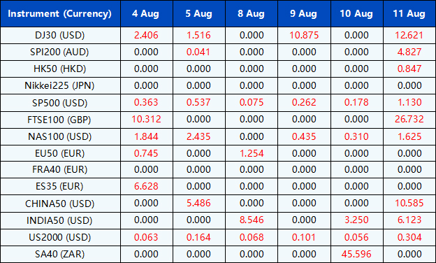 Please note the above data are subject to changes. Please refer to MT4/MT5 for details.