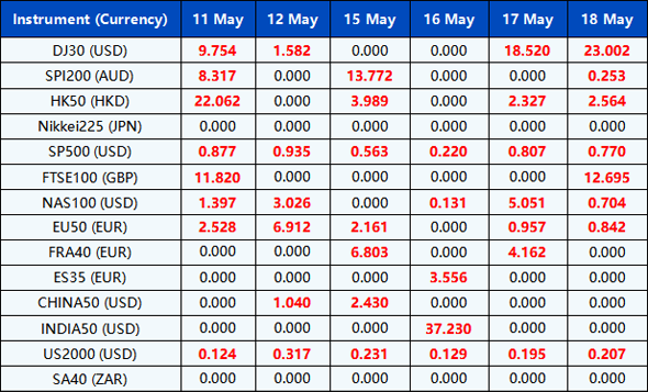 Please be advised that the dividends of the following index CFDs will be adjusted by upcoming ex-dividend dates. The comment for trading index CFDs will be in the following format “Div&<Product Name>&<Net Volume>” which show in the balance after the close of the day before the dividend payment date.