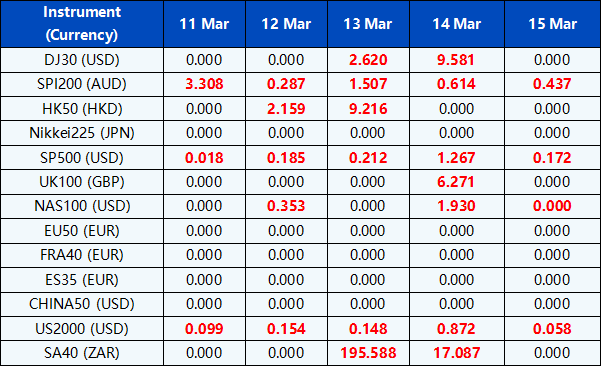 Please note the above data are subject to changes. Please refer to MT4/MT5 for details.