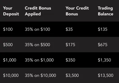 4.Eligible Clients (both new and existing clients), who meet the criteria set forth herein are able to receive credit bonuses or otherwise known as trading credit, equal to: